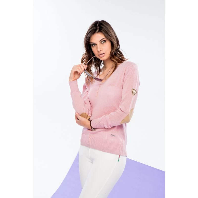 This lightweight linen sweater is extremely light and breathable. It features faux suede elbow patches and has the AA badge on the sleeve. The classic shape makes it as appropriate for the office as for an extra layer at a formal lesson or clinic.