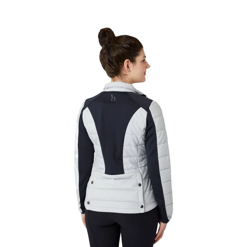 This functional women’s jacket has light padding, is quilted at the sides and sleeves and has a oneside stretch fleece panel at the back and on the sleeves. Contrasting piping at cuffs and zipper. Water repellent and windproof, this is a perfect option for layering. 3D logo print on the back below the neck and a small metal logo plate at the front hem. Two hidden zipper pockets for keeping your belongings safe during rides. The back buttons open a riding slit for increased freedom of movement in the saddle.