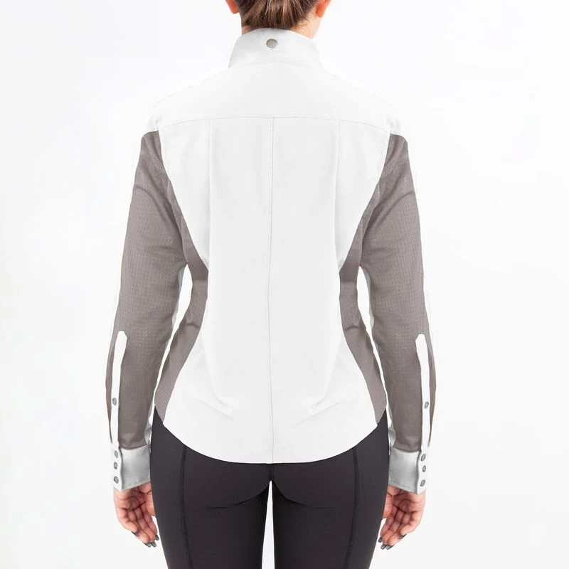 Constructed in lightweight 4-way stretch-woven CoolStretch fabric paired with high stretch IceMesh. Features include a button front, button cuffs, and shoulder darts that provide a beautiful fit and allows for optimum mobility.