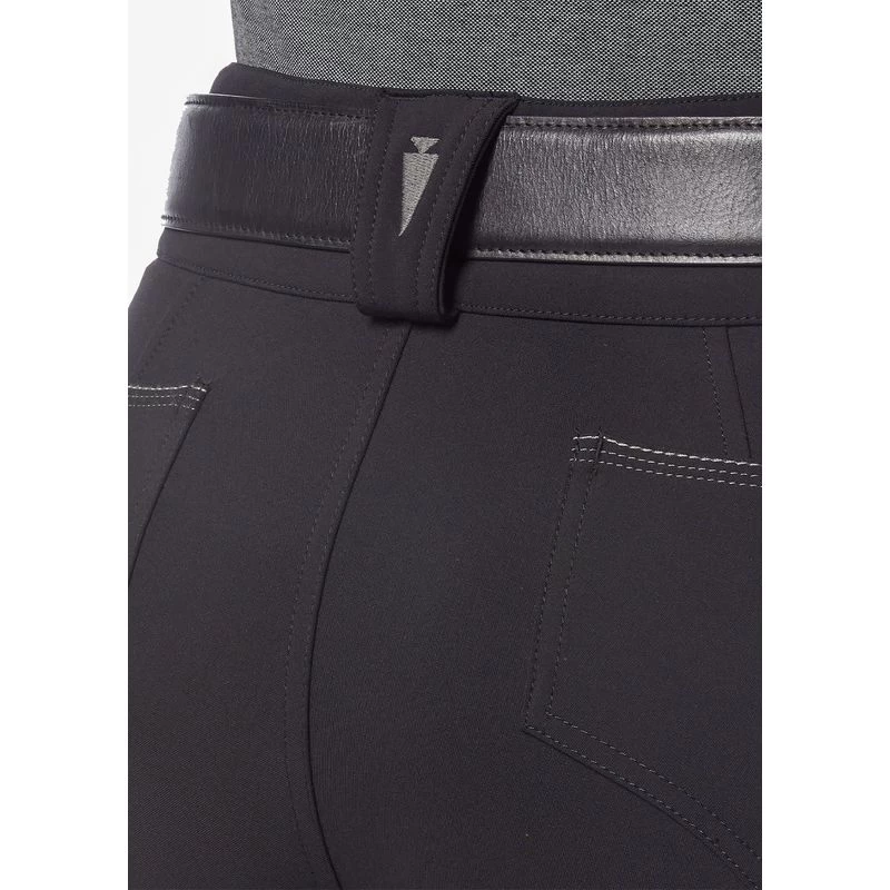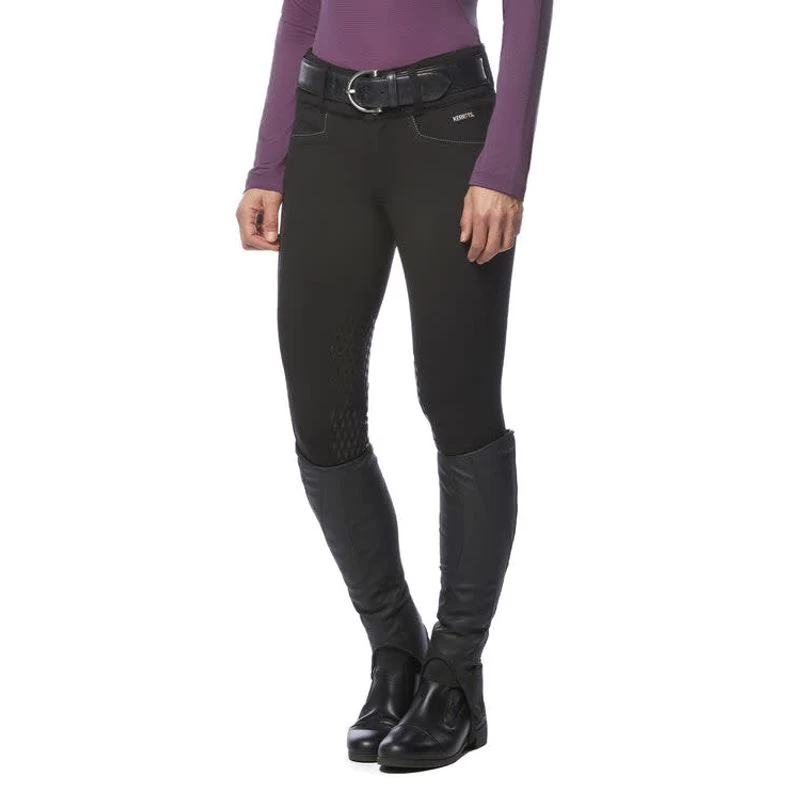Crafted in Flex&Sculpt stretch-woven fabric that combines an inner power mesh tummy-control panel and a three-inch waistband to provide light compression and hold without sacrificing freedom of movement. Kerrit Sticks Silicone knee patches provide maximum grip while ensuring complete flexibility. Contoured back pockets for in-saddle access. Tailored with front zip fly and three-snap closure. Tonal contrast stitching details add subtle flair excluding tan which is clinic-ready with no contrast stitching.