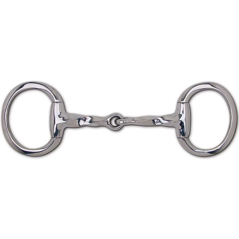 This bit has eggbutt cheeks and a slow twist, single joint mouth.