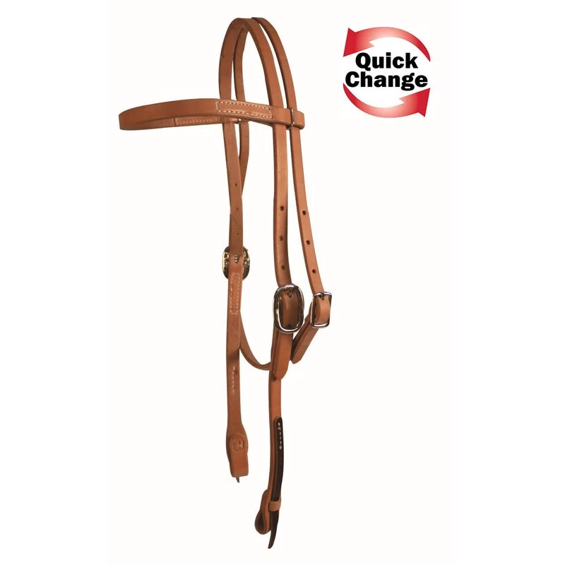 Choose this 5/8″ Golden tan leather headstall lined with latigo leather and finished with quick change loops at the bit ends.